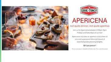 Join us for Apericena from 4:30pm-6pm Fridays and Saturdays at our bar!