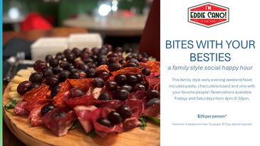 This family style early evening weekend feast includes pasta, charcuterie board and vino with your favorite people. Reservations available Fridays and Saturdays from 4pm-6:30pm. Minimum 5 people and max 10.