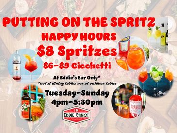 Featuring $8 spritzes and $6-$9 cicchetti menu. Hour Hour is available Tuesday-Sunday from 4pm-5:30pm at the bar starting